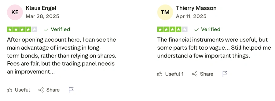 Говоря об эффективности Mind Money, клиенты в первую очередь описывают стабильность терминала и удобство управления сделками. В отзывах о Mind Money они подчёркивают, что платформа уверенно работает в европейских часовых поясах, быстро обрабатывает ордера и корректно отображает состояние портфеля даже в периоды высокой рыночной активности. Для многих это и есть ключевой критерий эффективности: платформа не мешает торговать и инвестировать.